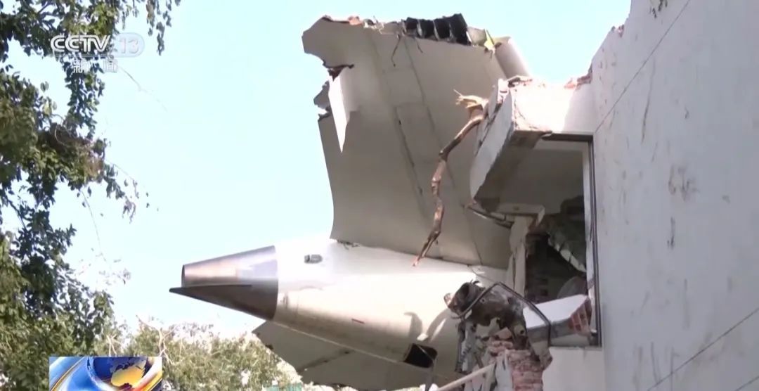 飞机最终坠毁在距机场不远、民房密集的低矮建筑区,一栋医学院宿舍楼被直接撞毁,引发剧烈爆炸与火灾。