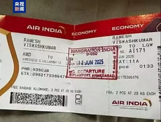 总台记者获悉,维什瓦斯库马尔·拉梅什在飞机起飞前曾与父亲通话,称即将起飞。其家属透露,维斯瓦什库马尔和兄弟埃杰坐在紧急出口附近的座位上。